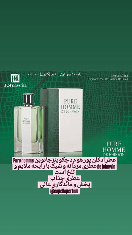 🌿 ادکلن Pure Homme جانوین: شیک، جذاب با رایحه ملایم و تلخ