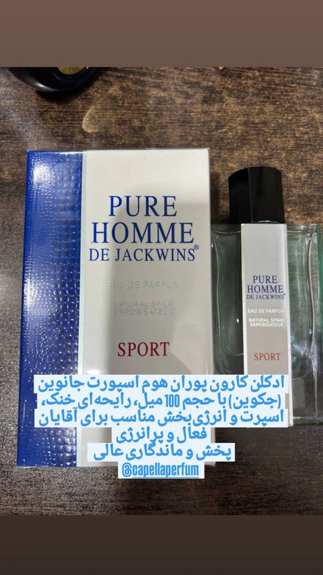 عطر ادکلن مردانه جانوین (Jackwins) مدل Pure Homme Sport رایحه خنک و انرژی‌بخش حجم ۱۰۰ میل